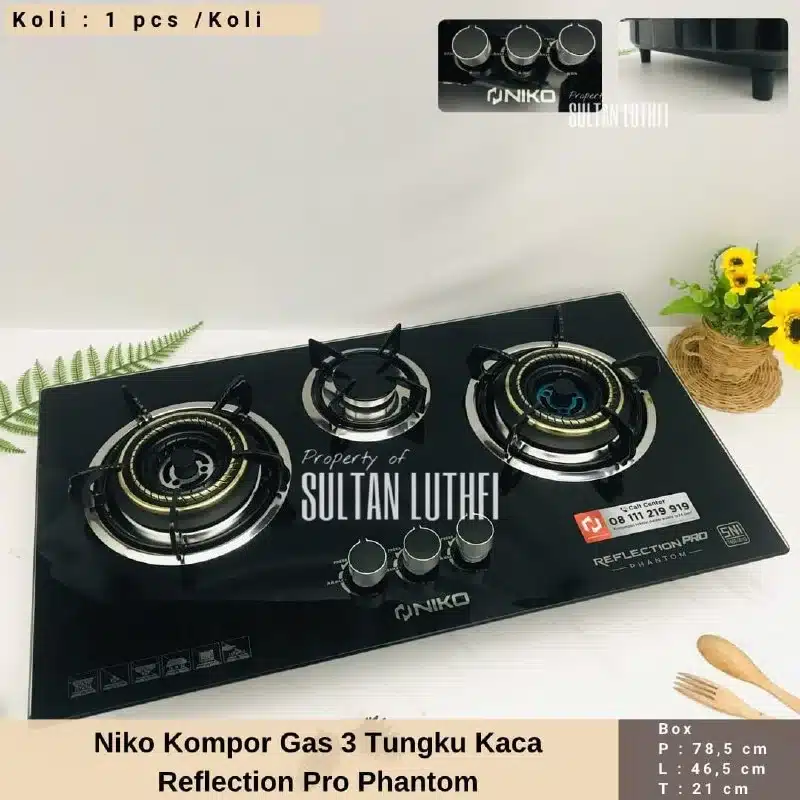 Niko Kompor Gas 3 Tungku Kaca Reflection Pro Phantom
